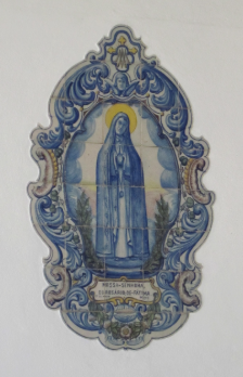 Un des murs exrétieurs de la capelinha est décorée d'un azulejo représentant Notre Dame du Rosaire.